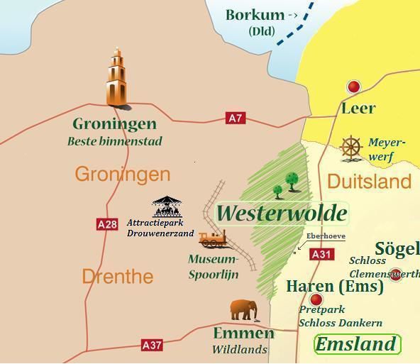 De Eberhoeve is een groot half vrijstaand vakantiehuis en een gedeelte van een mooie oude(woon)- boerderij uit 1961. Gelegen in het prachtige Sustrum-Moor (Duitsland, Emsland, vlak bij de grens met ZO-Groningen ter hoogte van Ter Apel en Sellingen) en omringd met veel groen.